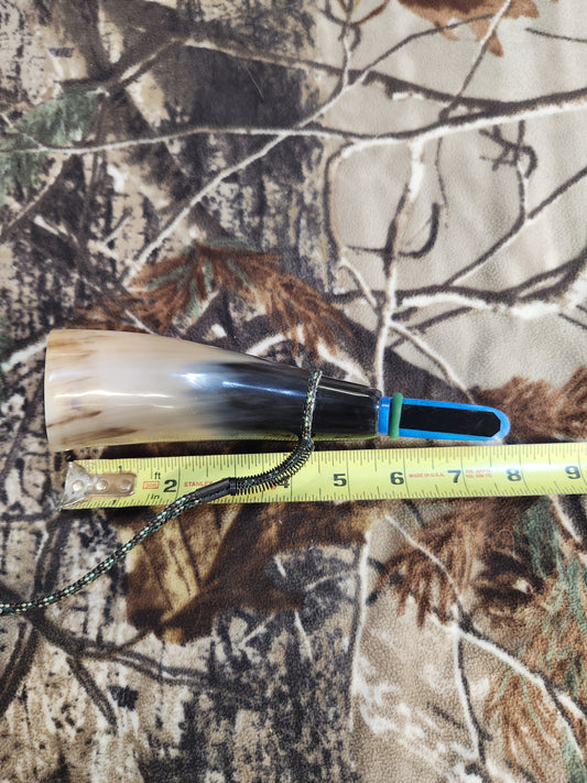Open reed polished bull horn coyote howler