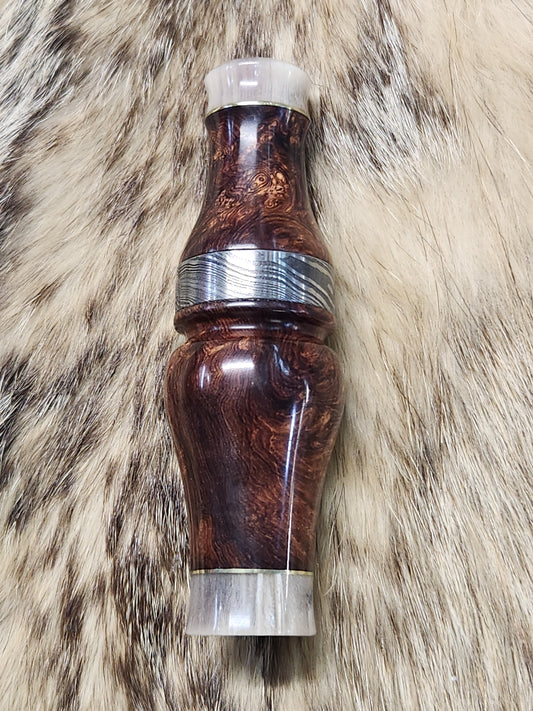 Honduran rose wood sleeved with muskox horn & brass double reed duck call