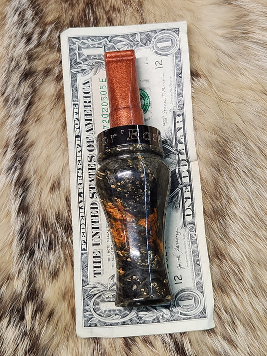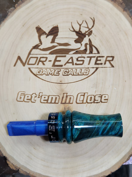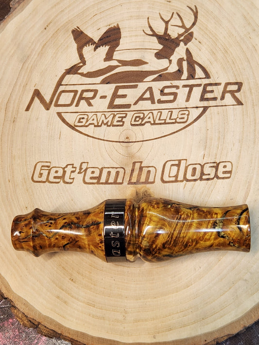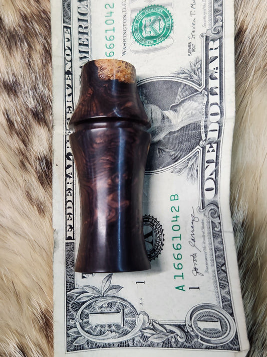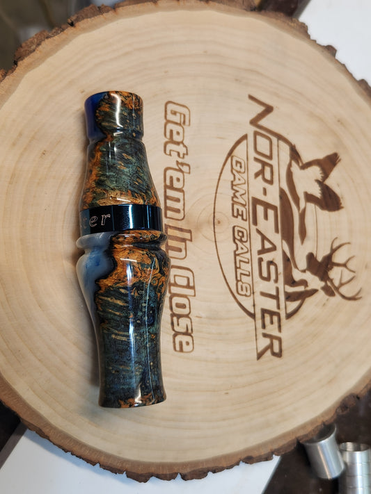 Short reed goose call stabilized and dyed amboyna Burl Wood in resin