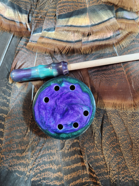 Fordite in resin double Reed Duck Call with cocobolo wood sleeved tone board