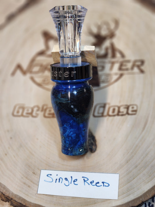 Amboyna burl wood in resin single reed duck call