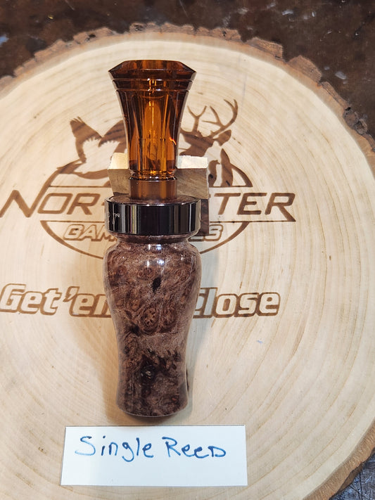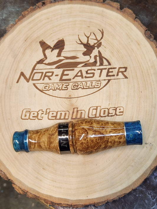 Golden amboyna wood with boxelder Burl Wood inlays double Reed Duck Call