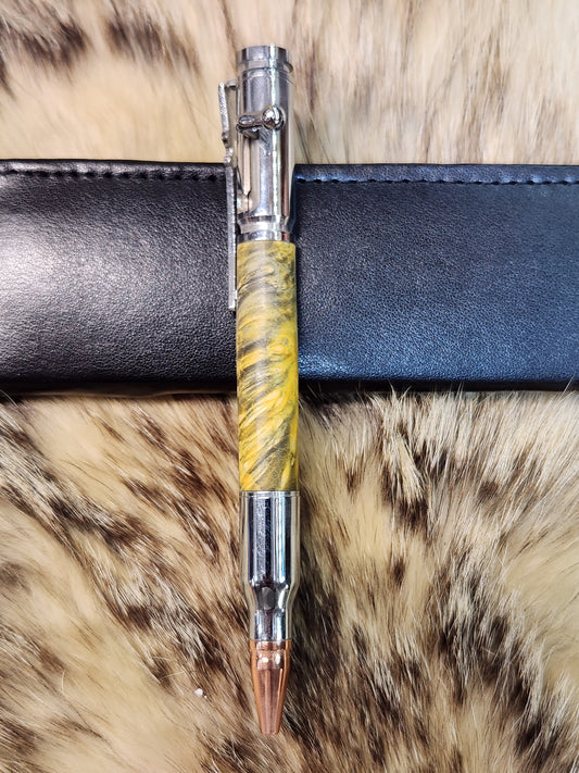 30cal Bolt action pen in silver with double dyed boxelder burl wood