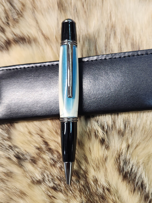 Gatsby style Pen Mammoth ivory in blue resin