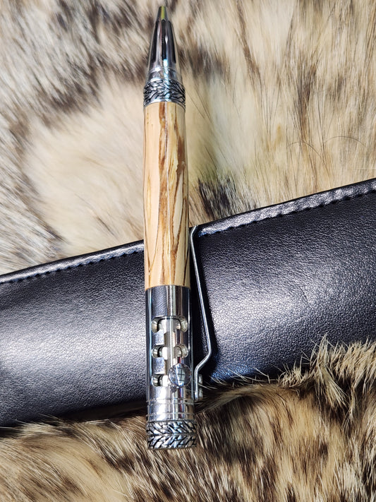 silver gear shift pen made from apple wood