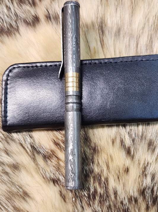 Damascus steel and brass custom pen