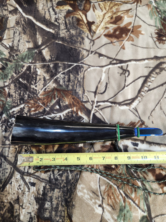 Open reed polished bull horn coyote howler