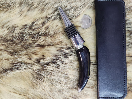 custom wine bottle stopper with cork screw made from cape bufflo horn