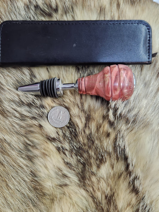pinkish red shift knob style wine bottle stopper boxelder burl wood