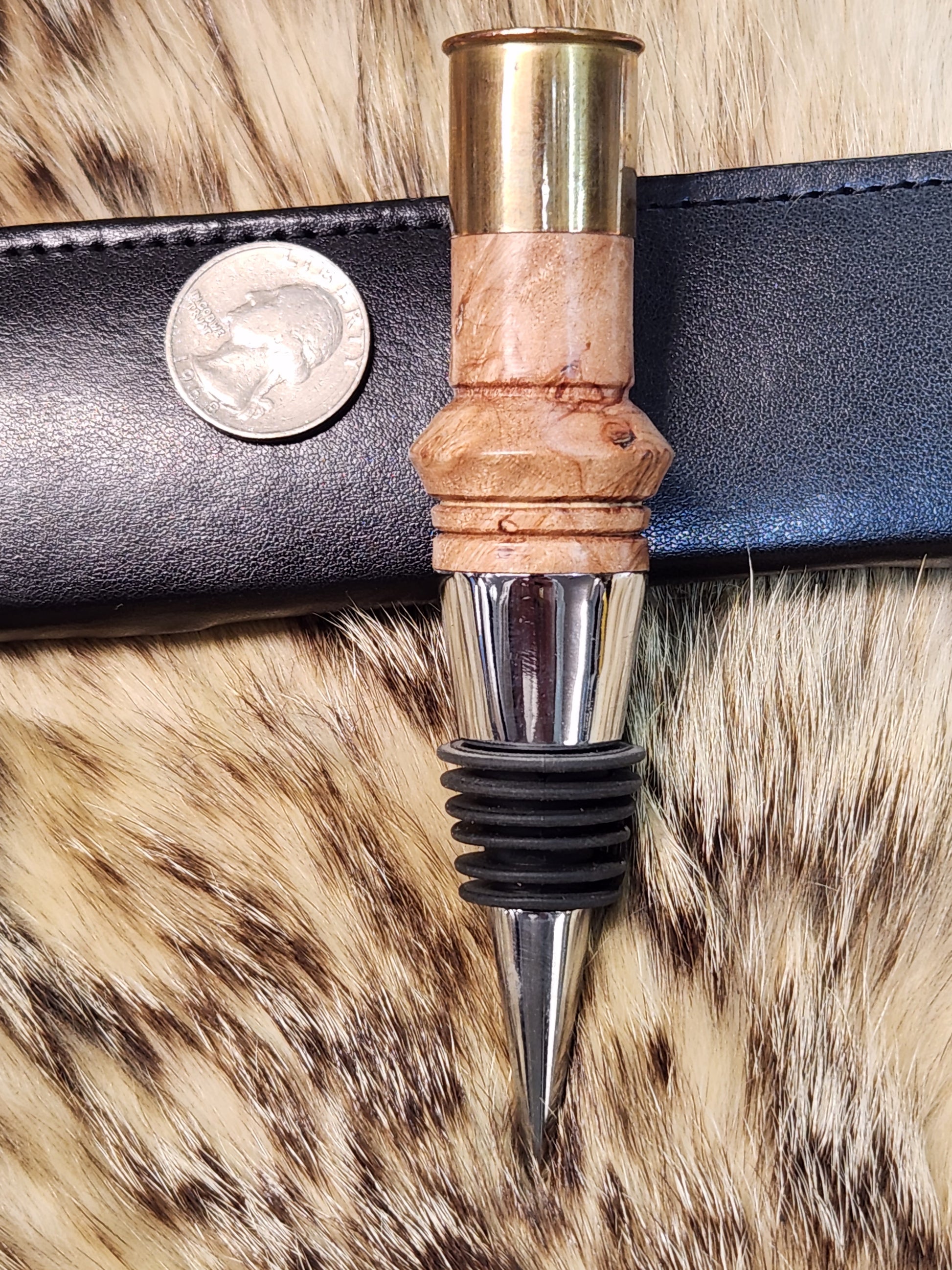This custom wine bottle stopper is made from red oak with a 12ga shotgun shell on the end and was made right here in the Nor'Easter game call shop by me, they are all one of a kind custom wine bottle stoppers and will look great the next time you need to seal that bottle of wine or to open one with a custom cork screw bottle opener