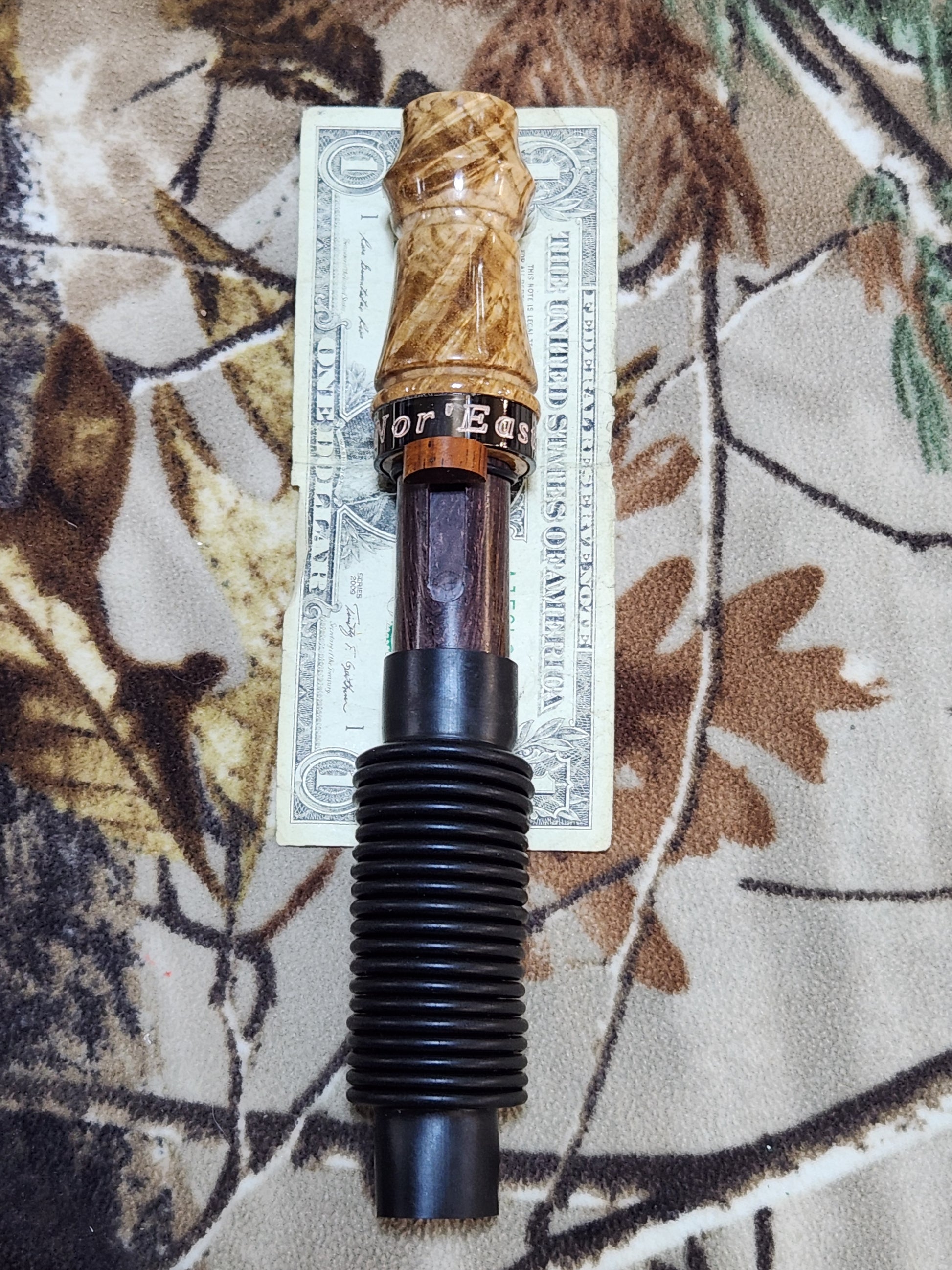 This is a "Limited Edition" Evolution Series adjustable grunt call So get them before they're gone, The call is fully adjustable from a doe bleat to a swamp buck by just sliding the tone adjuster with one finger, no need to take apart your call to change the tone it can now be done in a second. The call is made from stabilized black ash burl wood with custom engraved metal band With a real Rubber Grunt tube for realistic sounds, No Plastic Here, They are turned and tuned one at a time by me right here in the shop, i also has a hand turned the cocobolo wood tone tube and the cocobolo Thumb slide, i also make the brass slide and tone boards here in the shop and cut each reed for tone and even engrave the bands right here marked with the Nor'Easter Logo, If you like one of a kind calls this is the one for you, Great Looks And Sounds Like the real thing. Comes with free lanyard and nor'easter storage pouch along with some nor'easter vinyl stickers.