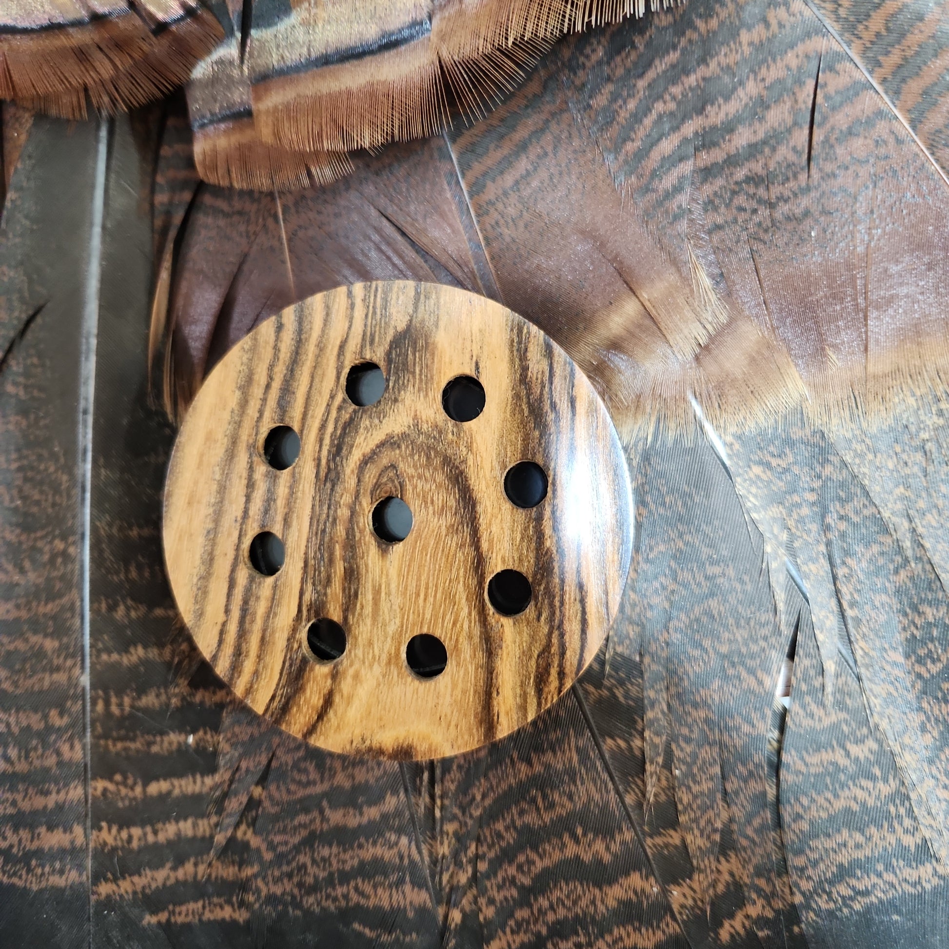 3.75" with 3.5" playing surface each pot call is tested for sound after it is finished, I try different strikers with the call to find the best striker to match the call, The strikers I use will vary but the one sent with the call will be the best match to the call, All my turkey calls are turned one at a time and polished and sealed so they will hold up in the field, if you give one of my turkey calls a try you wont be disappointed.