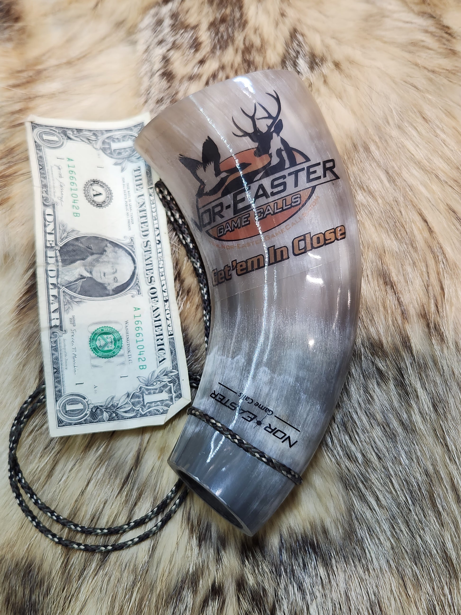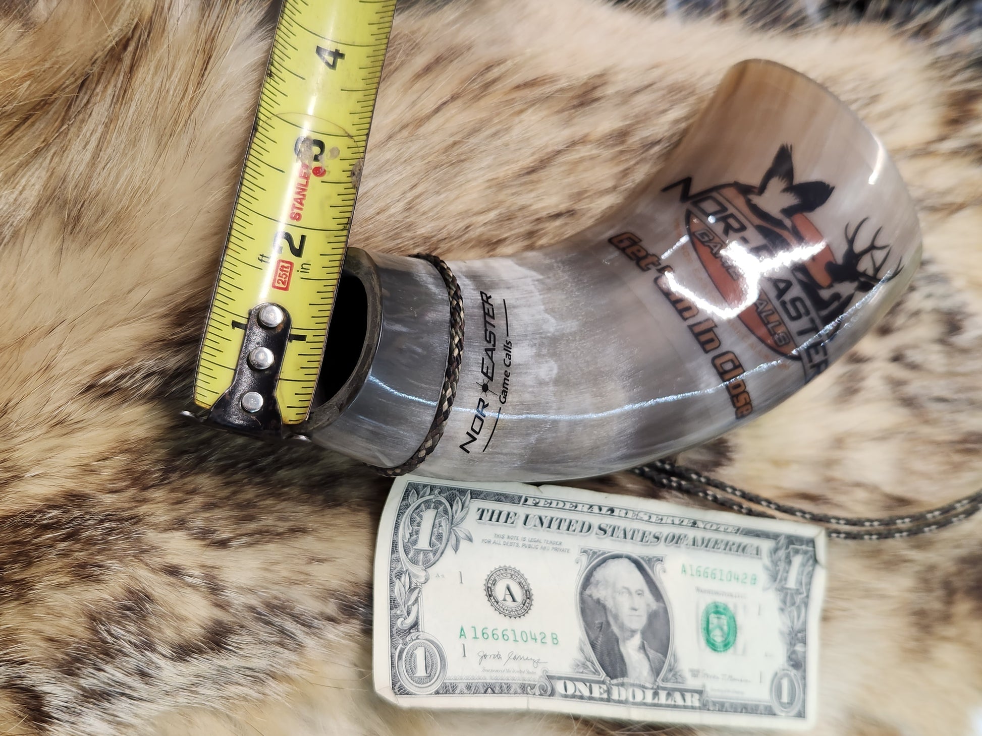 Coyote buffalo horn mouth amp call for use with coyote moth calls to reach way out there i have polished most of the scratches left by when the bull was using them. great addtion to the coyote hunting bag.