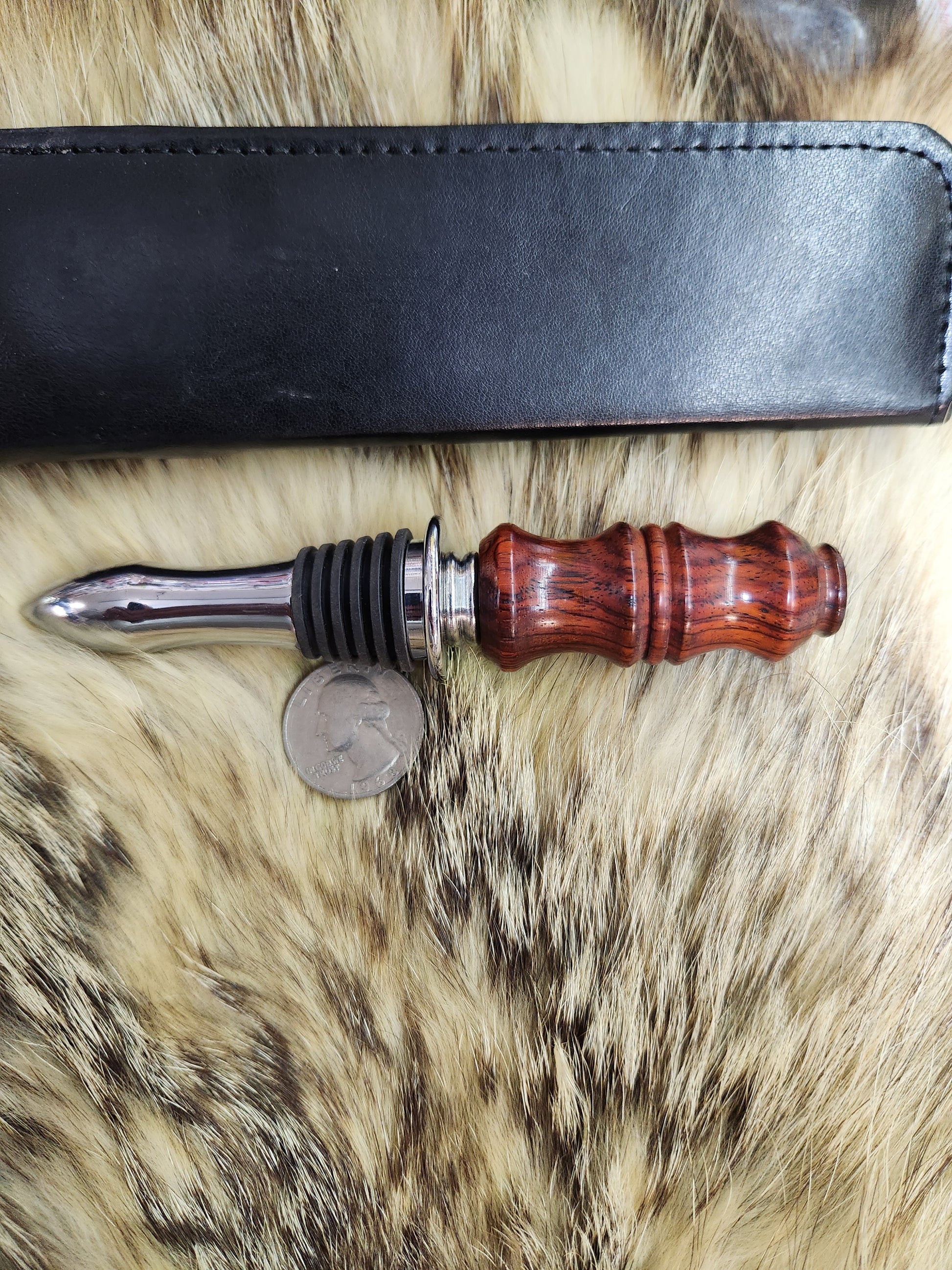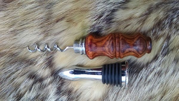 This custom wine bottle stopper is made from Cocobolo wood with cork screw and was made right here in the Nor'Easter game call shop by me, they are all one of a kind custom wine bottle stoppers and will look great the next time you need to seal that bottle of wine or to open one with a custom cork screw bottle opener