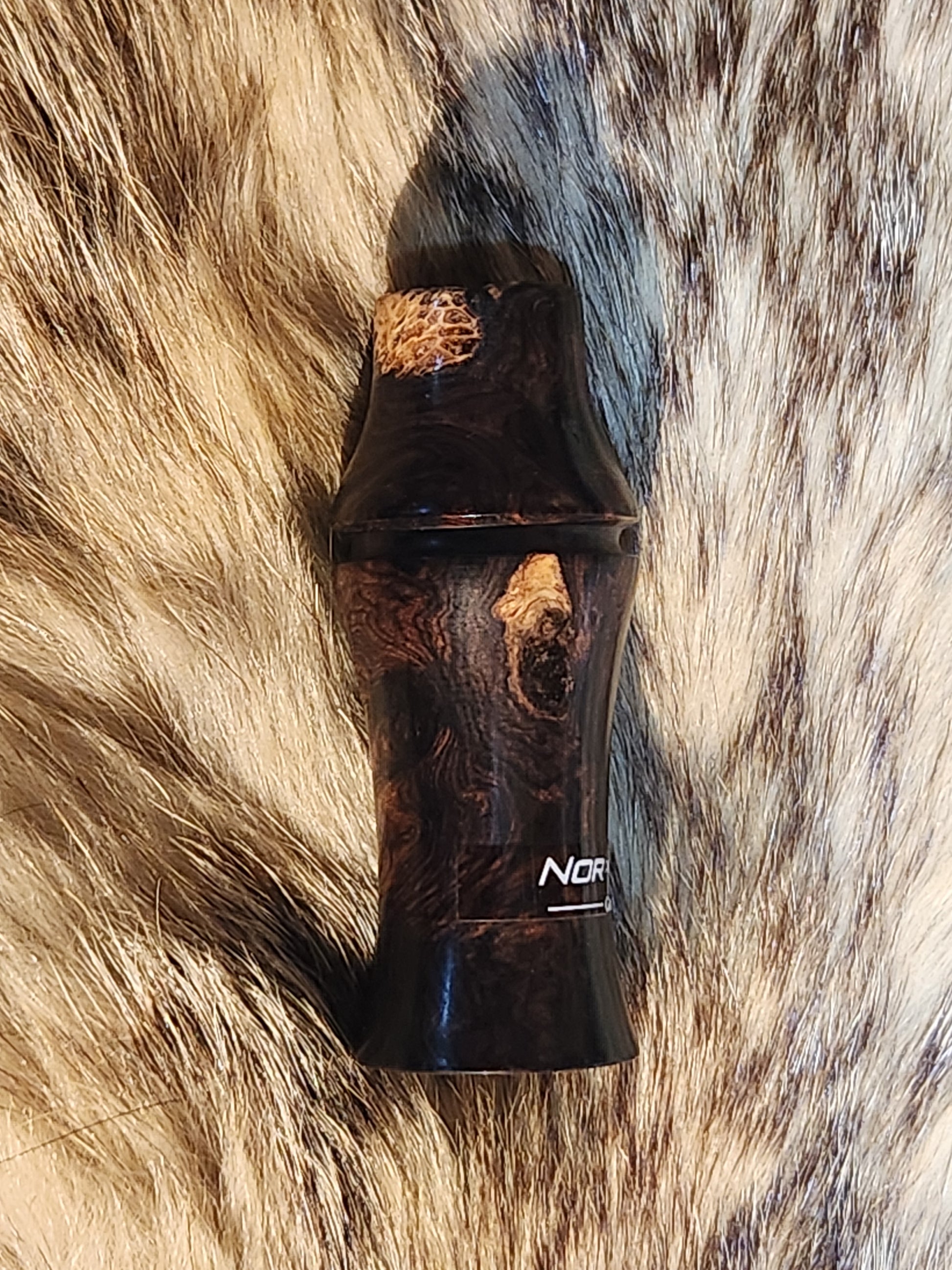 Experience superior sound with the closed Reed Honduran rose wood Burl rabbit distress call. Handmade with rare Honduran rose wood Burl, this call has some great sounds to call in the wary coyote. Comes with storage bags, call lanyard and Nor'Easter Stickers.