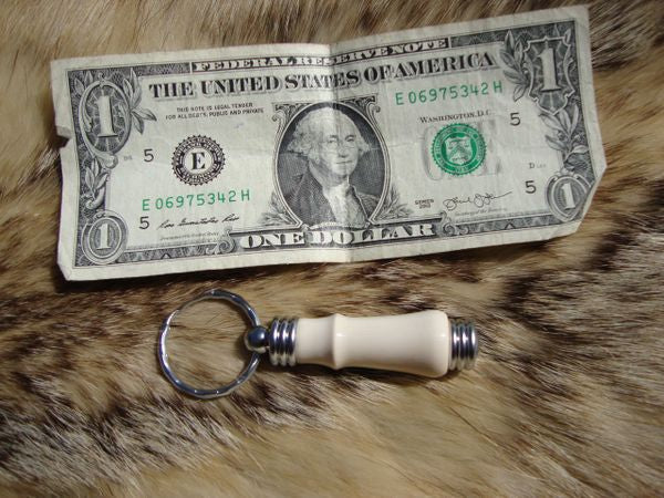 Custom Made Mammoth Ivory Key chain Hidden Compartment, Top Of key ring unscrews to reveal a nice little compartment for anything small you want on hand, the mammoth ivory looks great and does have some very minor checking in the ivory as most mammoth ivory does because of its age,the larger cracks have been filled with red resin. the mammoth ivory will Date between 15,000 and 25,000 years old and was found in Siberia Russia in the perma frost region, This little gem will make a great gift for the person who has everything, No international sales