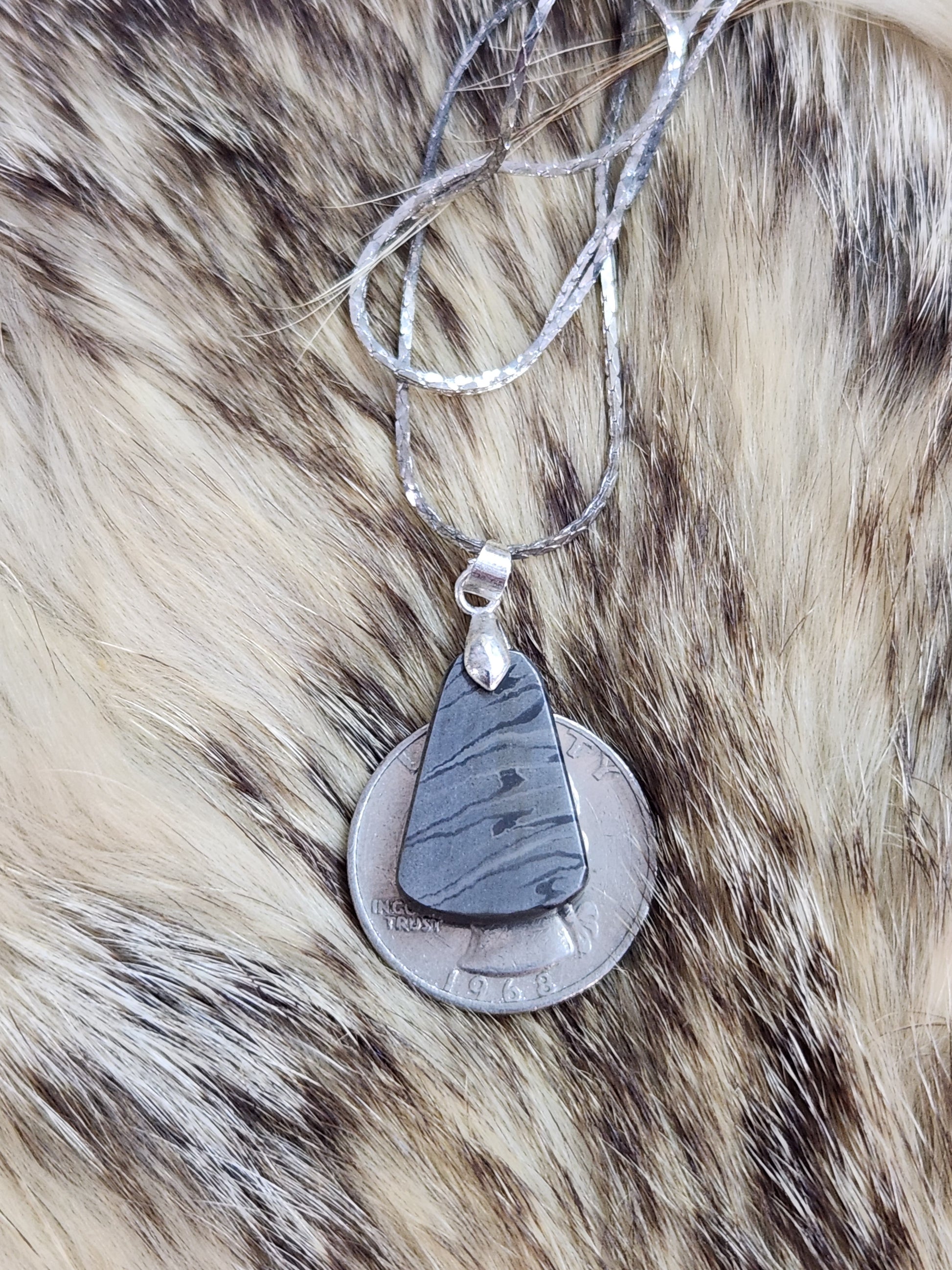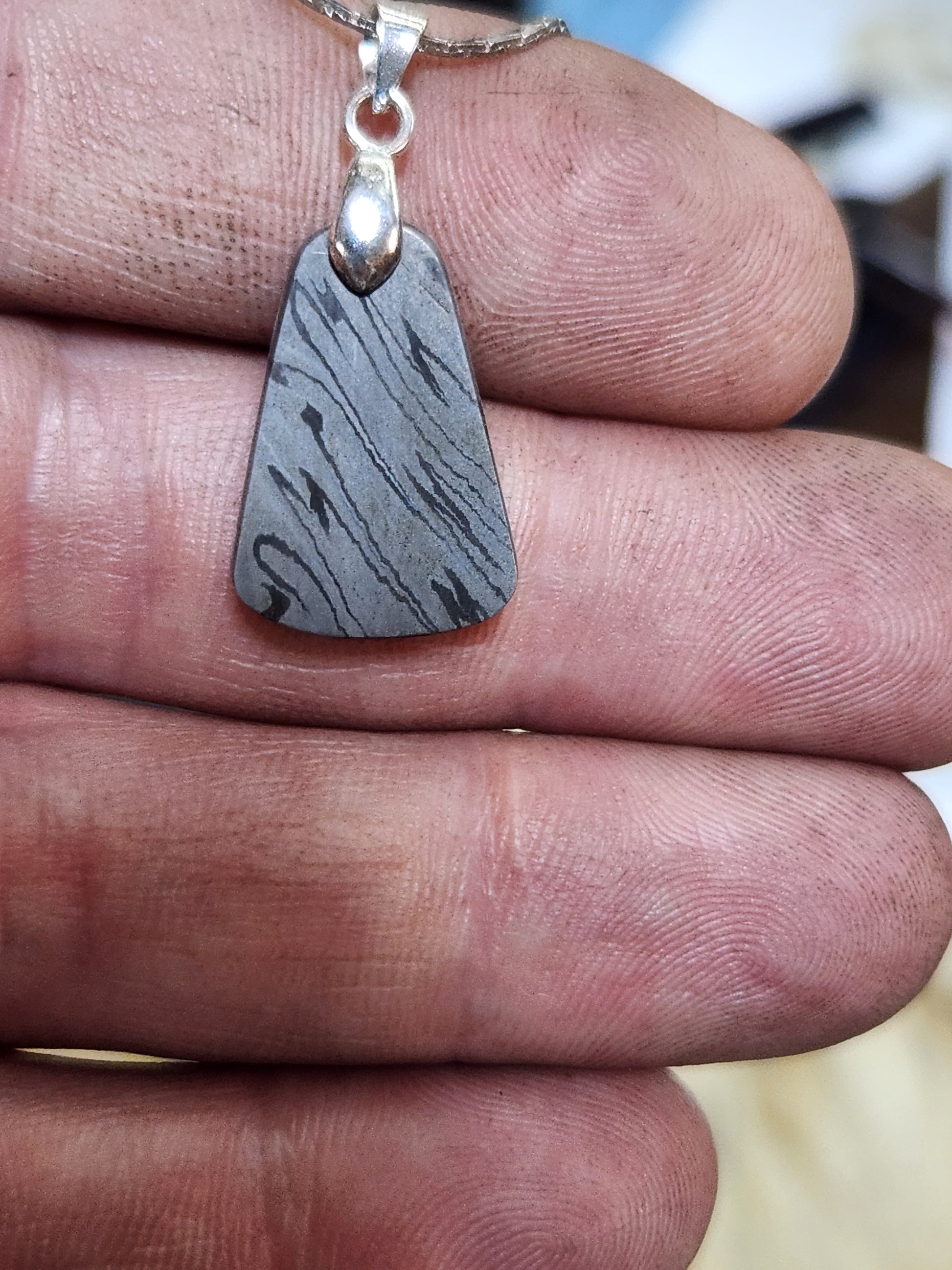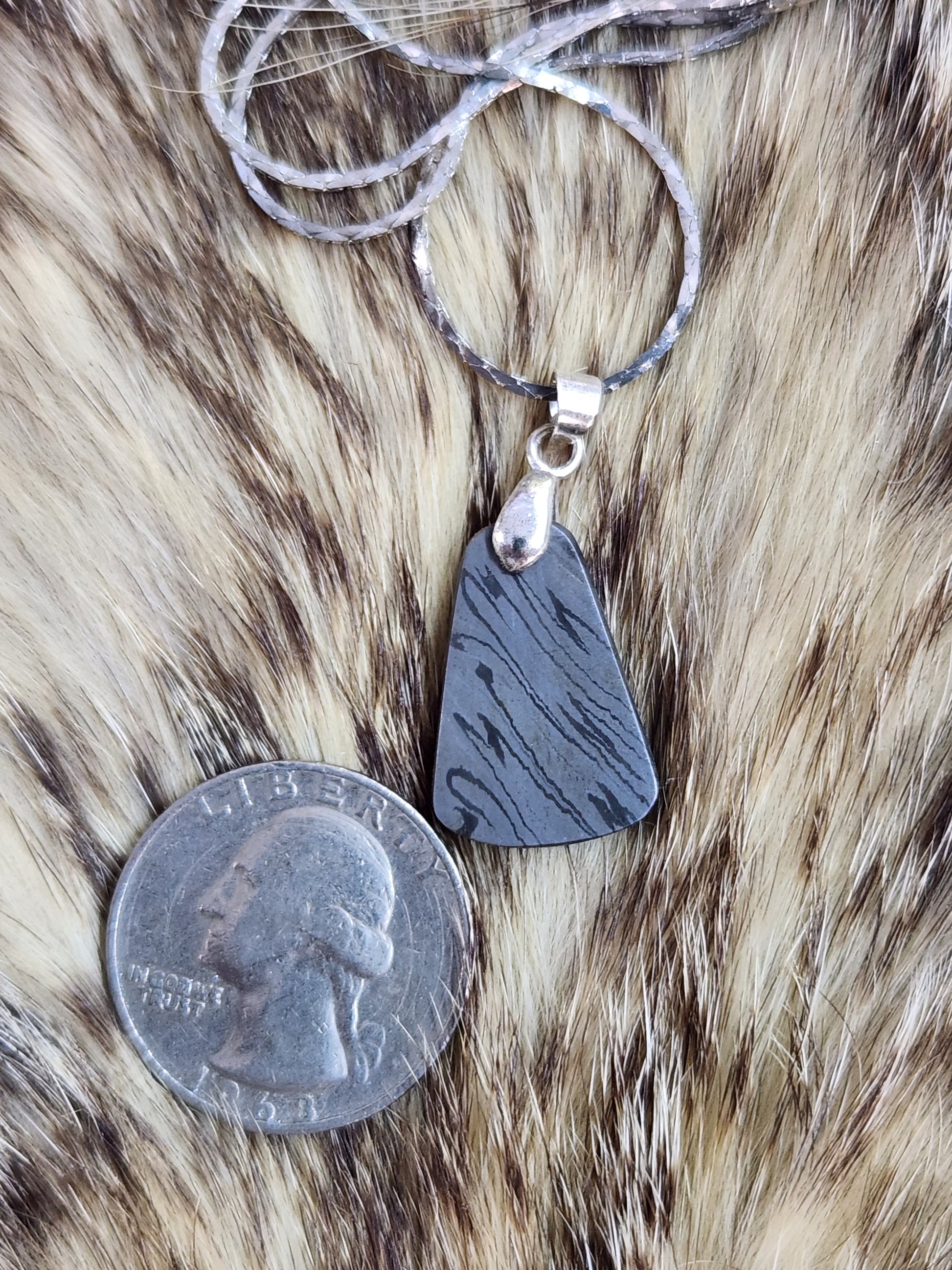 Here is a truley one of a kind mosaic damscus steel kneckless with sterling silver fittings, this one is an eye catcher it was made right here in the shop by me and will ship in jewlery box