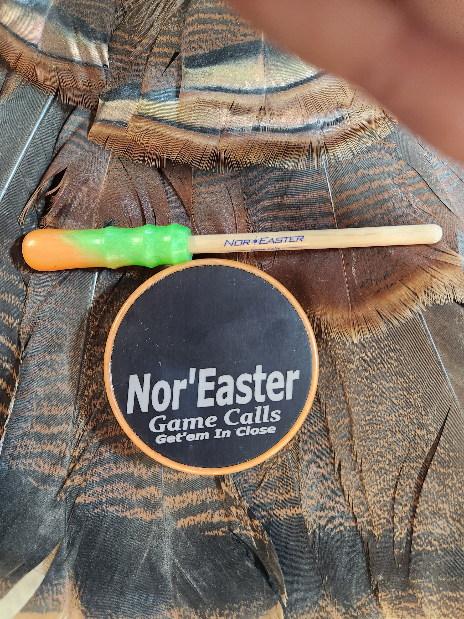 This is the new windbreaker turkey pot call designed by myself. Its made from alumilite resin. These calls are made one at a time by me including the custom striker. This series is anodized black aluminum over glass. We have been working on this design for almost 5 years tweaking it here and there. We gave it a good test run last year and the results where great. So jump on this custom pot call and make some noise. This call can break through the windy days and still play soft to get'em in close. Call comes with storage pouch and nor'easter vinyl sticker.