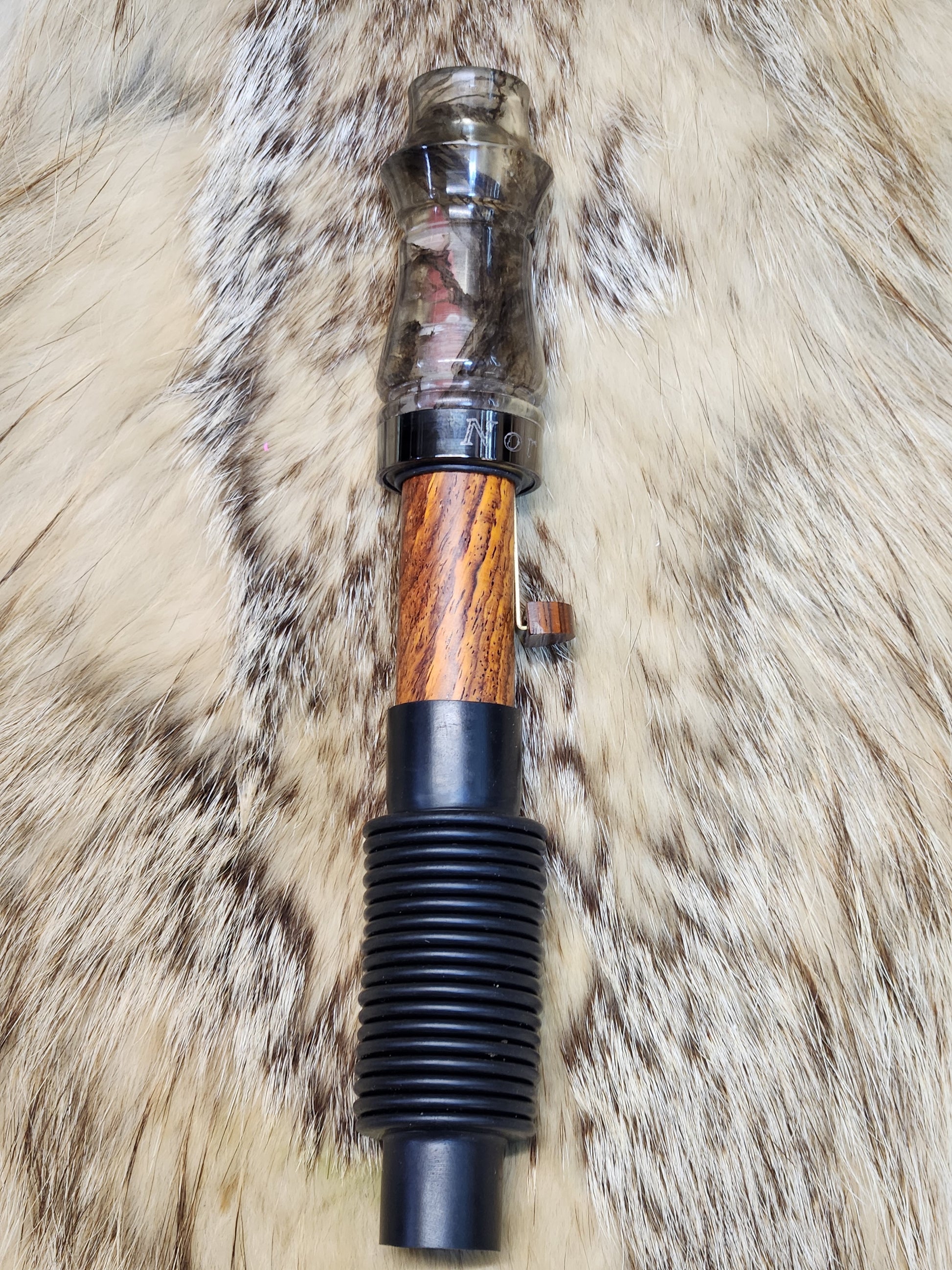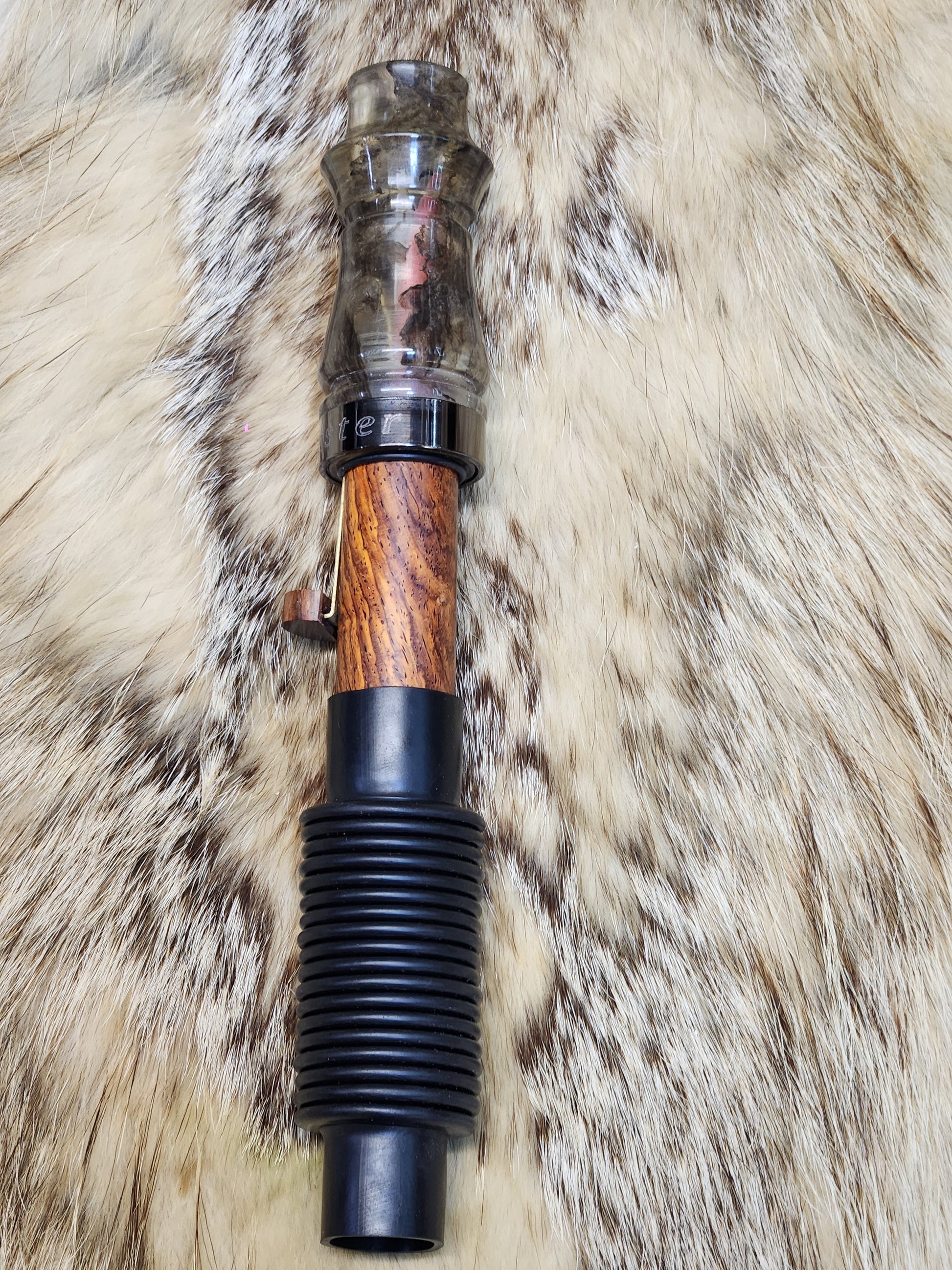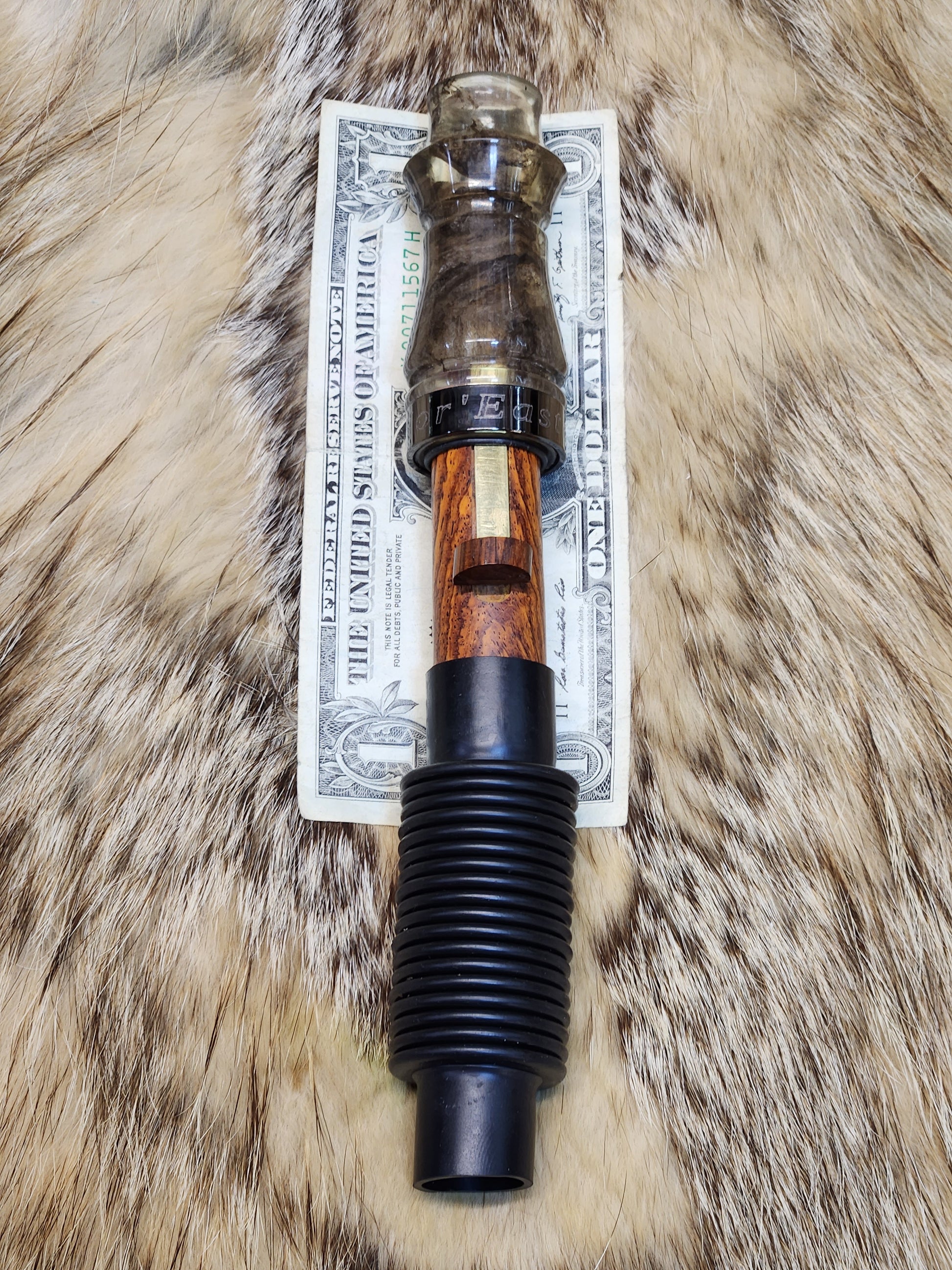 This is a "Limited Edition" Evolution Series adjustable grunt call So get them before they're gone, The call is fully adjustable from a doe bleat to a swamp buck by just sliding the tone adjuster with one finger, no need to take apart your call to change the tone it can now be done in a second. The call is made from real paper wasp nest in alumilite resin with custom antique copper metal band With a real Rubber Grunt tube for realistic sounds, No Plastic Here, They are turned and tuned one at a time by me right here in the shop, i also has a hand turned the cocobolo wood tone tube and the cocobolo Thumb slide, i also make the brass slide and tone boards here in the shop and cut each reed for tone and even engrave the bands right here marked with the Nor'Easter Logo, If you like one of a kind calls this is the one for you, Great Looks And Sounds Like the real thing. Comes with free lanyard and nor'easter storage pouch along with some nor'easter vinyl stickers.