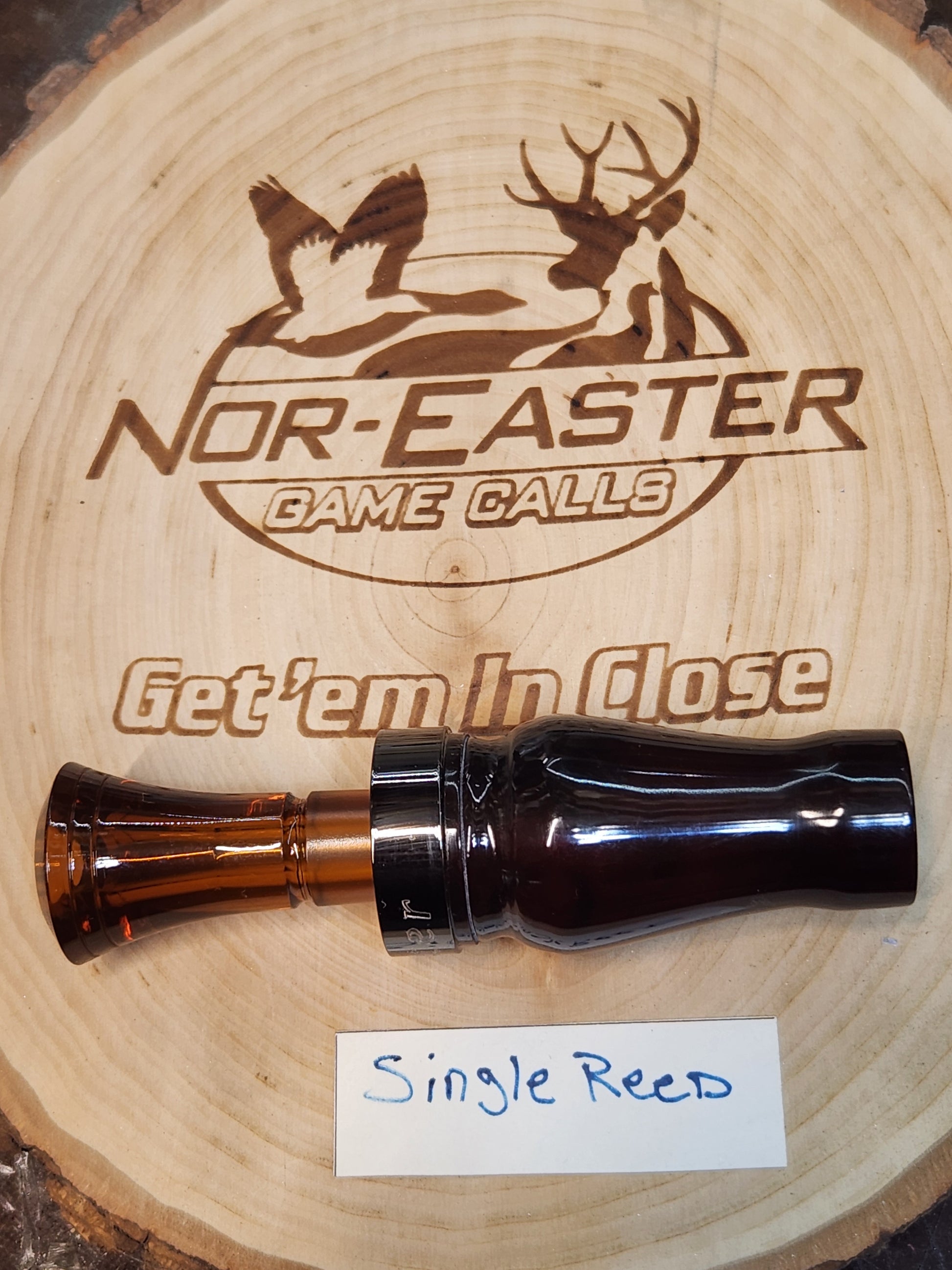 This year we are adding a more affordable line of duck calls. They are made from acrylic with an echo Inserts and the nor'easter metal bands. Great sounding call available in single and double reed. Comes with free lanyard, custom Nor'easter storage bag and a vinyl sticker.