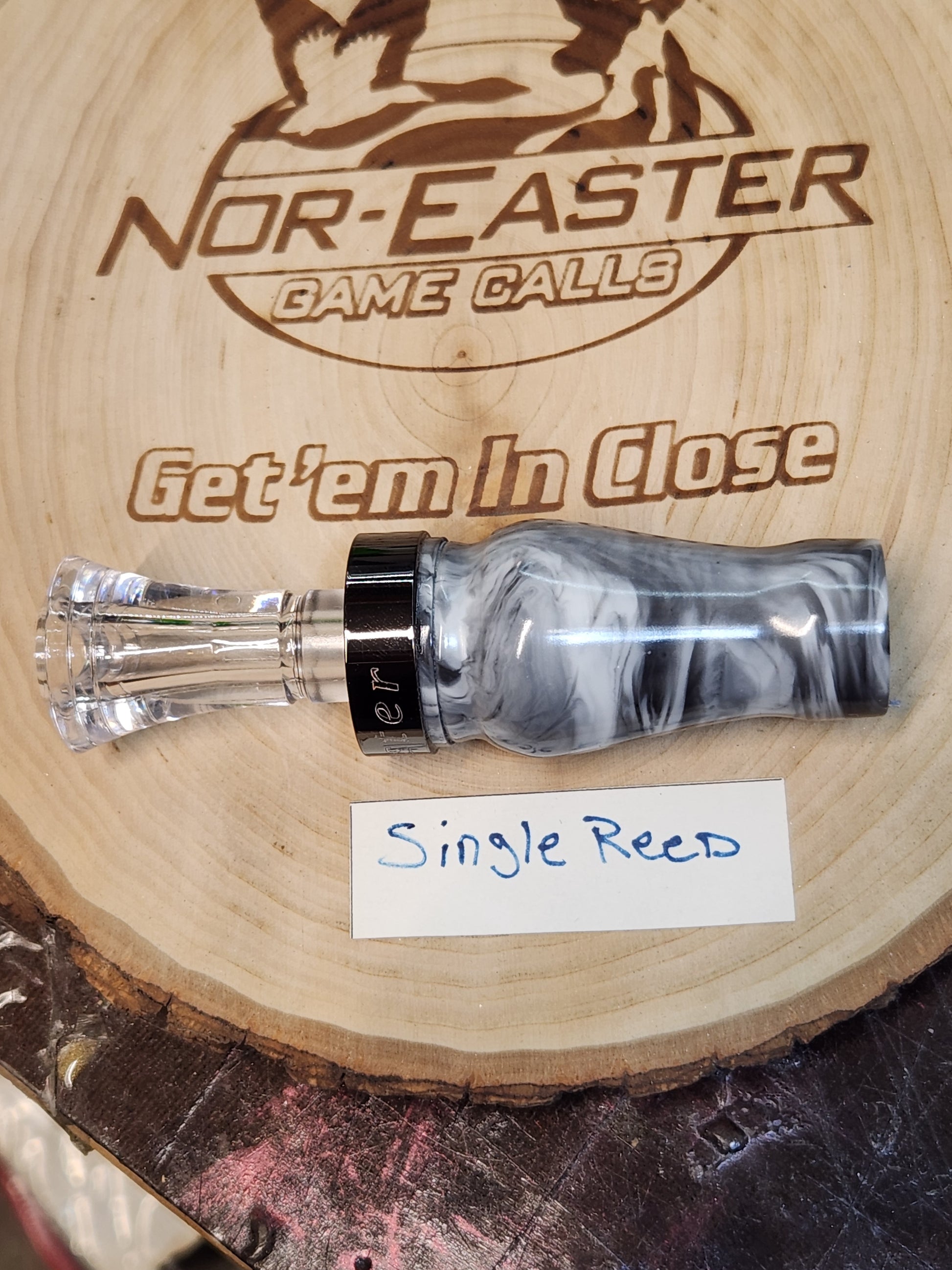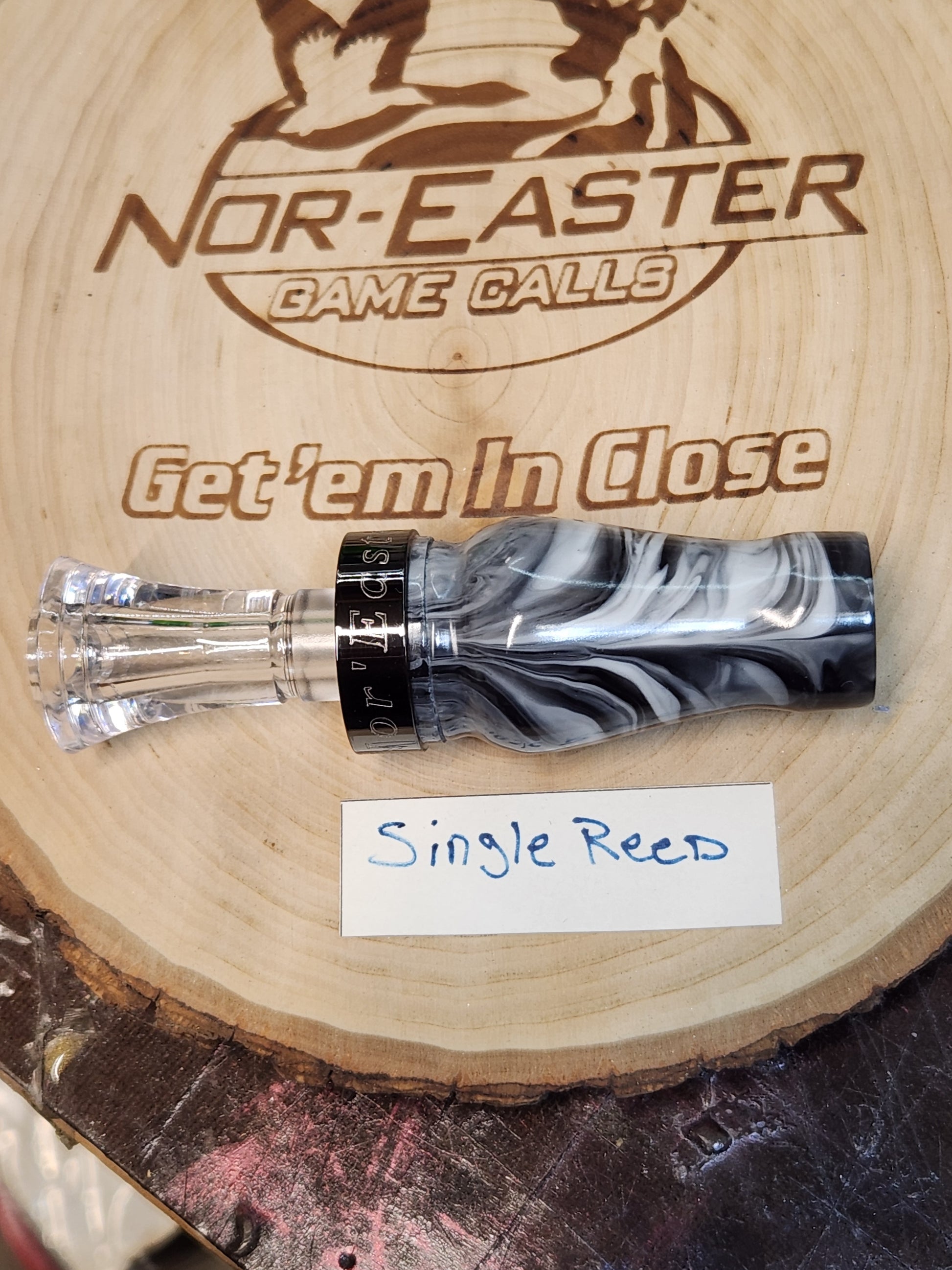 This year we are adding a more affordable line of duck calls. They are made from acrylic with an echo Inserts and the nor'easter metal bands. Great sounding call available in single and double reed. Comes with free lanyard, custom Nor'easter storage bag and a vinyl sticker.