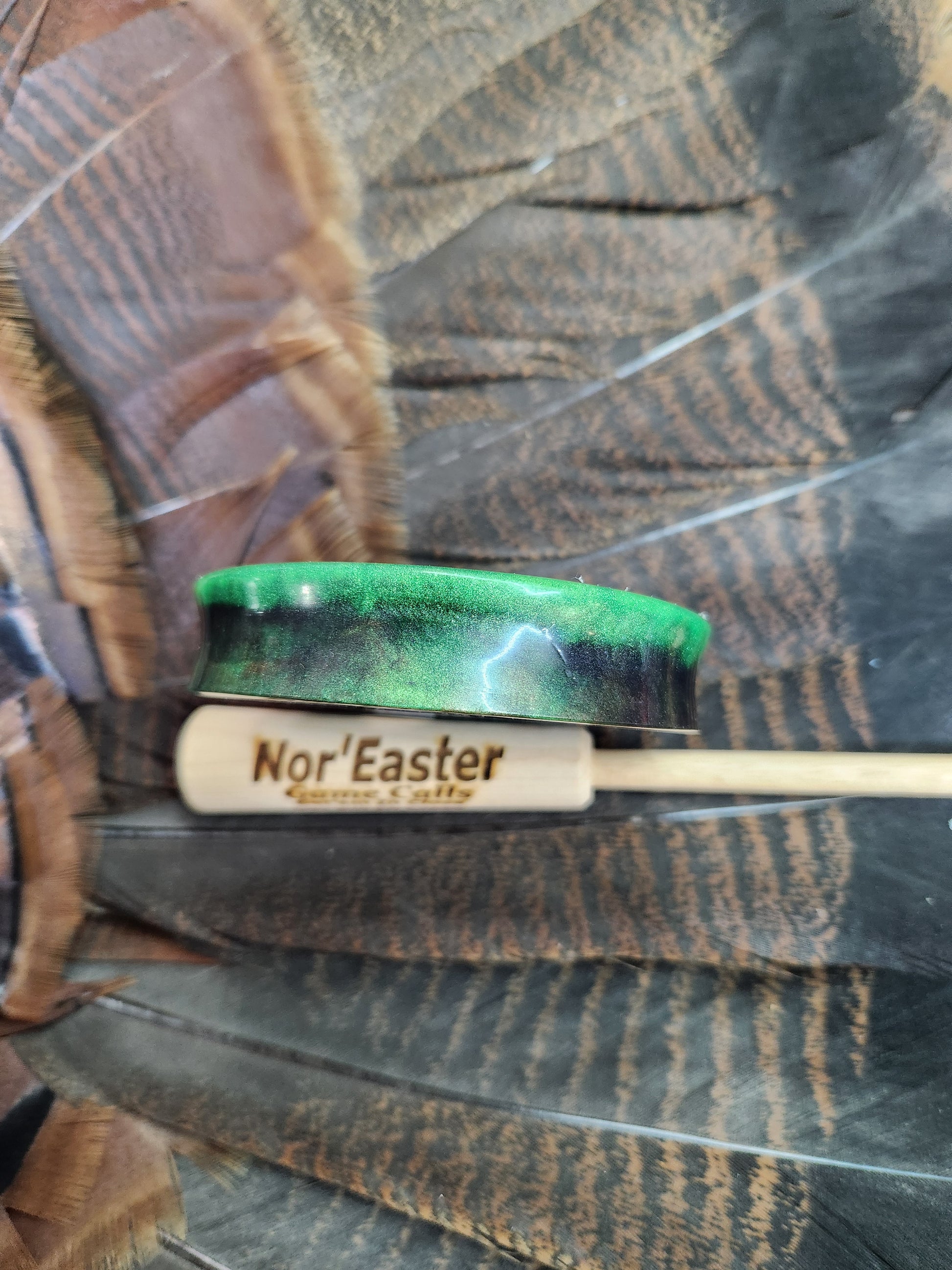 This is the new windbreaker turkey pot call made from alumilite resin. These calls are made one at a time by me including the custom striker. This series is anodized black aluminum over glass. We have been working on this design for almost 5 years tweaking it here and there. We gave it a good test run the last few years and the results are posted all over Instagram from all the successful hunters using this style call jump on this custom pot call and make some noise. This call can break through the windy days and still play soft to get'em in close. Call comes with storage pouch and nor'easter vinyl sticker.