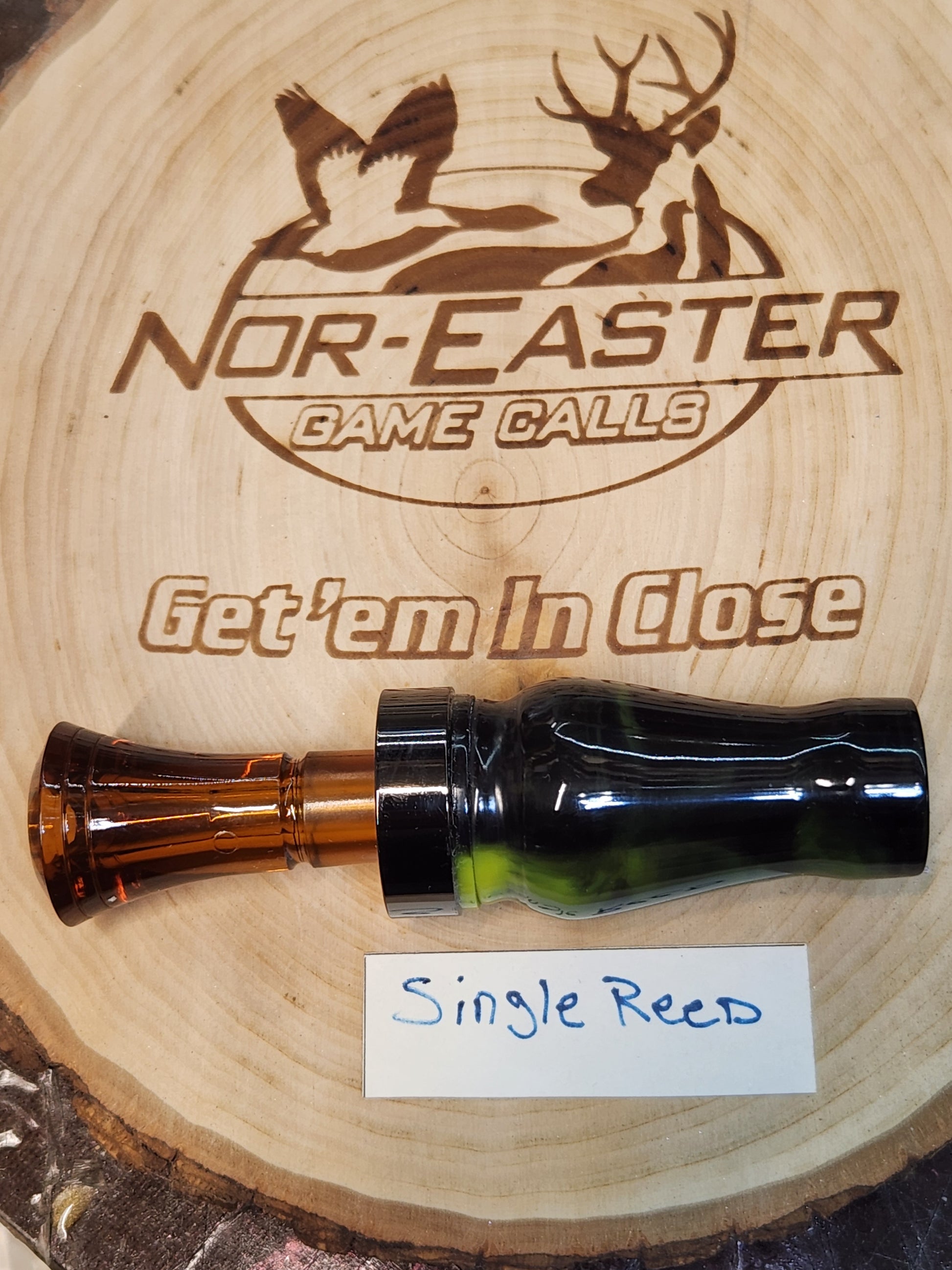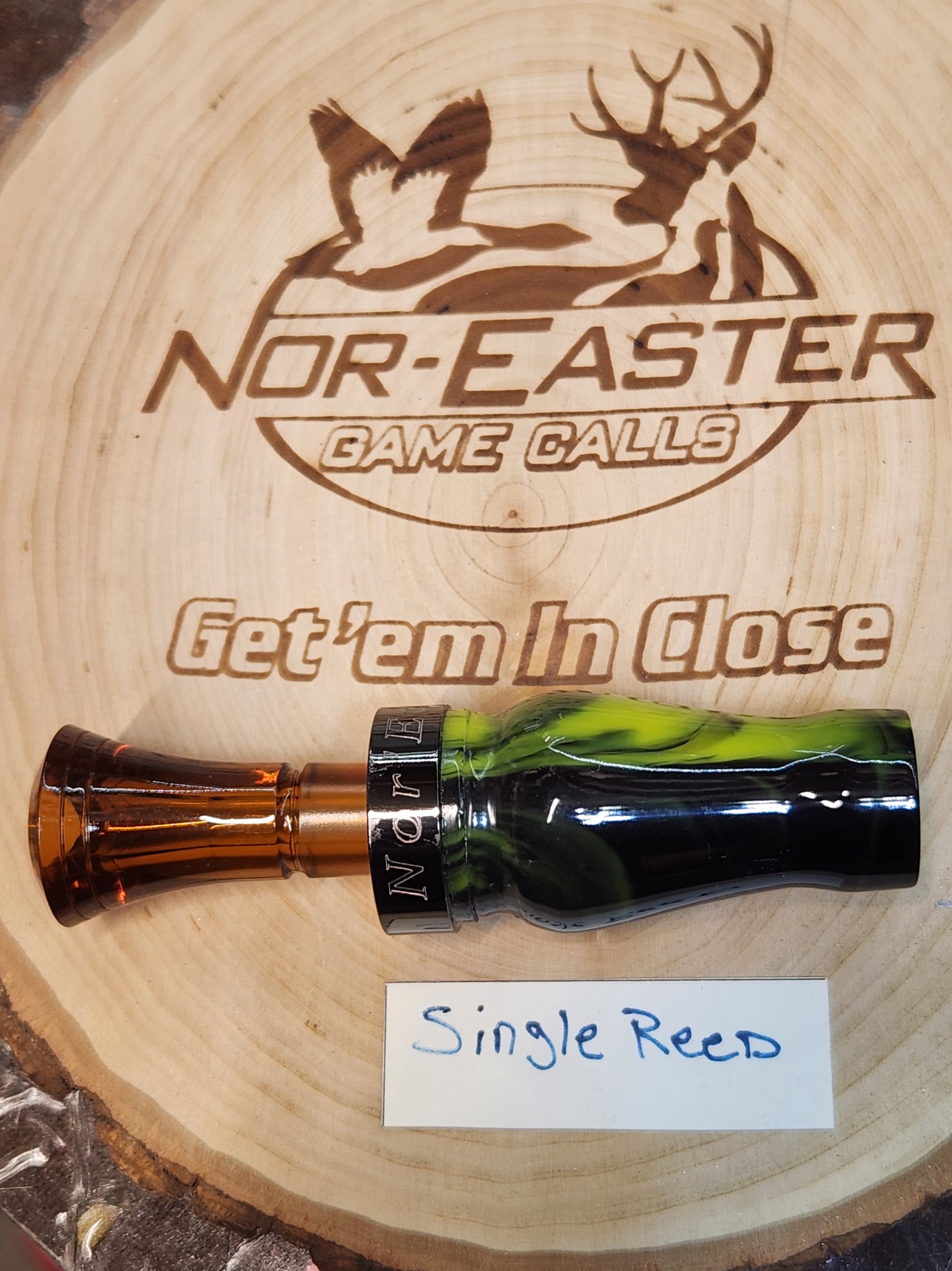 This year we are adding a more affordable line of duck calls. They are made from acrylic with an echo Inserts and the nor'easter metal bands. Great sounding call available in single and double reed. Comes with free lanyard, custom Nor'easter storage bag and a vinyl sticker.